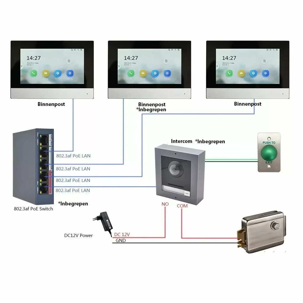 De modulaire intercom heeft slechts één netwerk aansluiting welke via PoE gevoed kan worden.