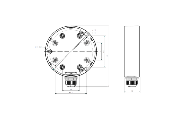 Aluminium Hikvision montagebox DS-1280ZJ-DM21 voor de Turret camera serie van Hikvision zoals de DS-2CD2347/87G2H of de DS-2CD2346/86G2-I etca Met deze opbouwbox kan de camera eenvoudig worden geplaatst tegen een bijv. een betonnen of stenen ondergrond. De box biedt ruimte om de UTP connector droog te kunnen wegstoppen.