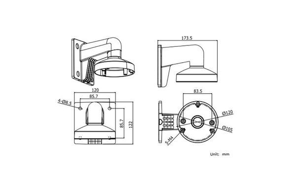 Hikvision DS-1272ZJ-110 Aluminium wandbeugel t.b.v DS-2CD2143G2-ISU, DS-2CD2146G2-I(SU), DS-2CD2147G2-SU en DS-2CD2141G1-IDW1